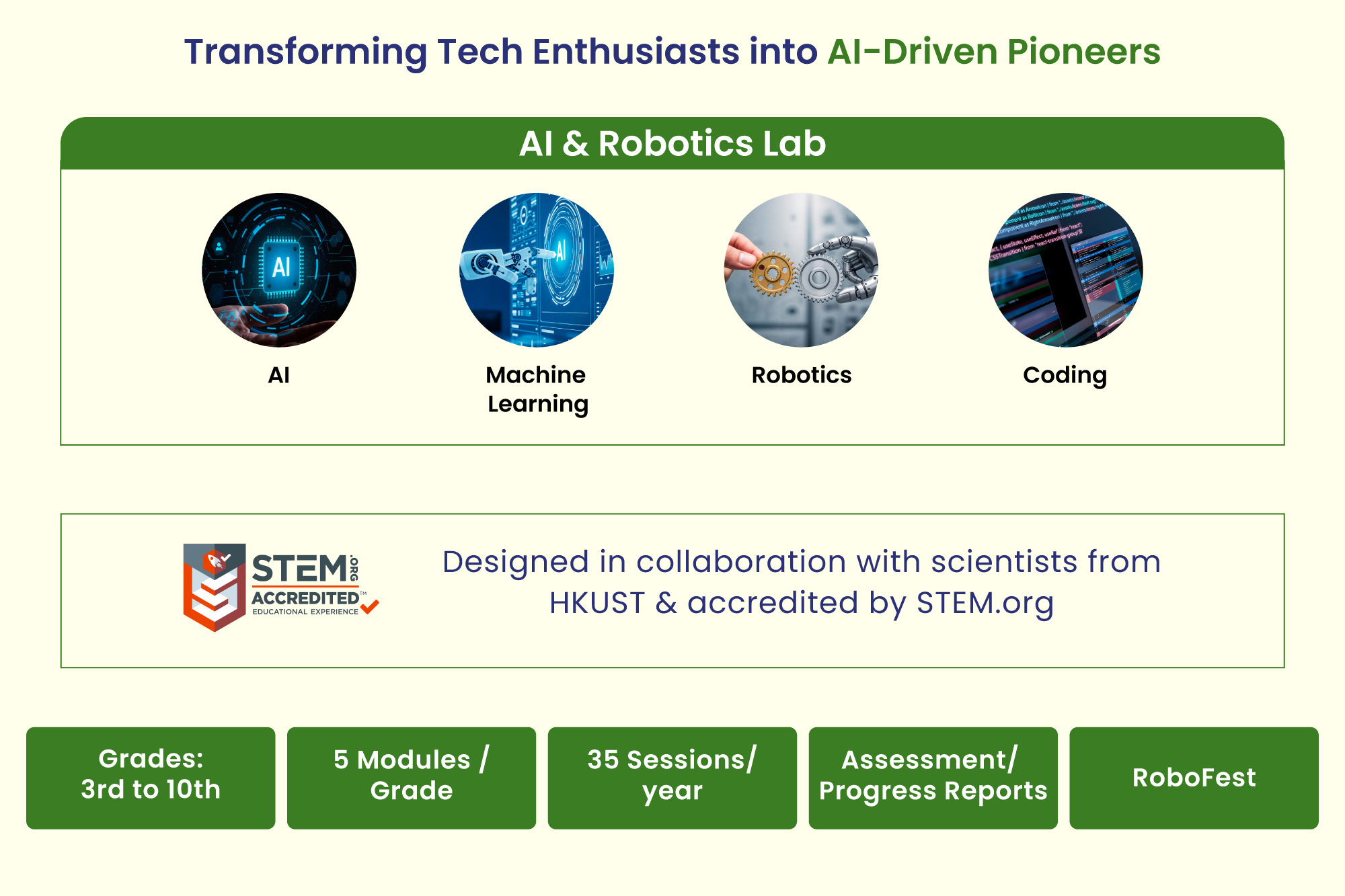 Custom-designed to ensure sound learning of AI, Coding and Robotics at advanced levels.